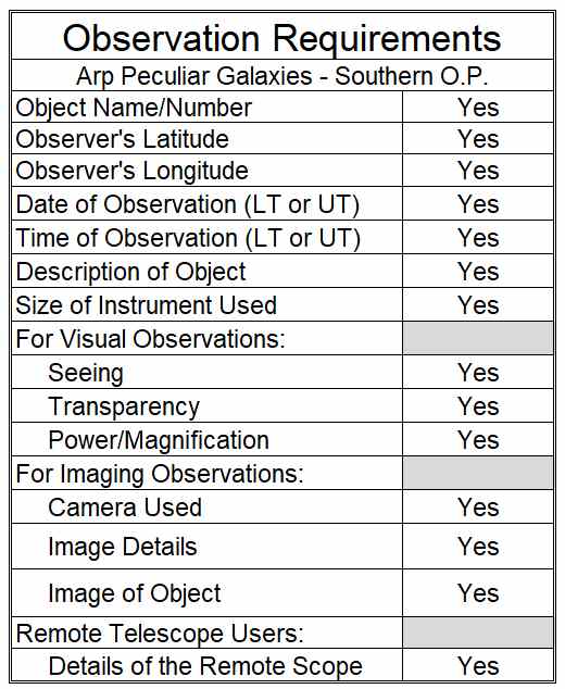 - If multiple galaxies are in the field, the Southern Arp galaxy should be indicated clearly.
