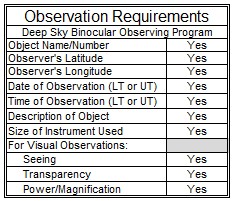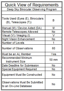 Deep Sky Binocular Observing Program Coordinator: