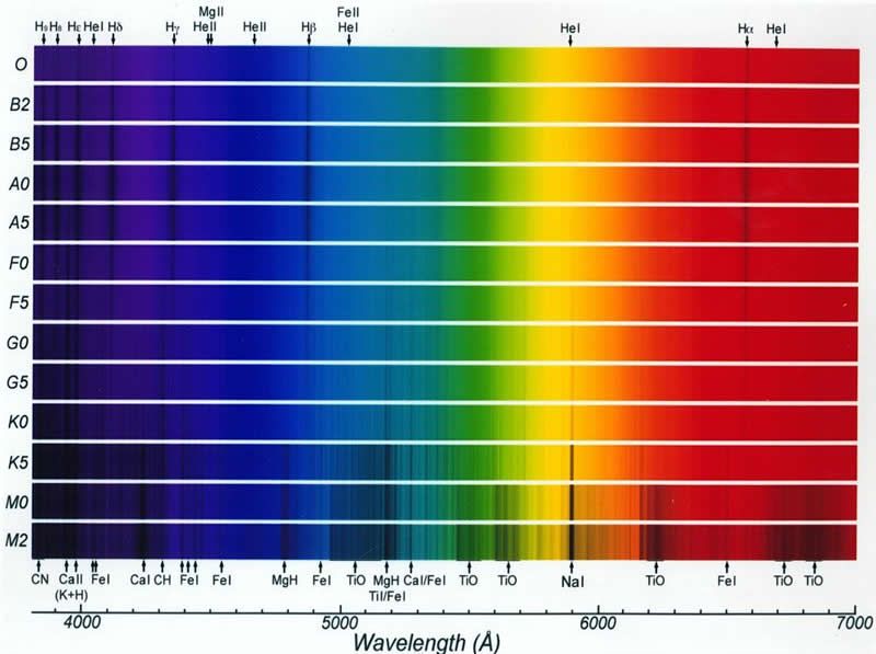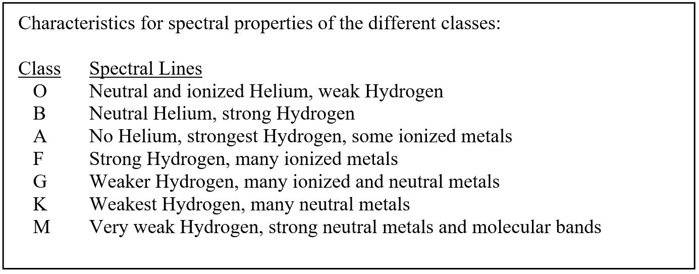 4. Making use of your spectrograms and the picture below attempt, to the best of your ability, to classify the stellar types (OBAFGKM).