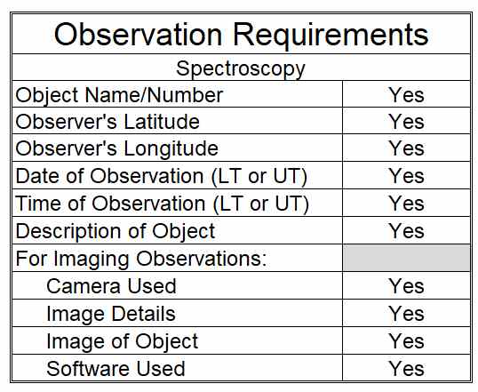 - The recording of astronomical spectra requires imaging and as such visual observation is not an option for this Observing Program.