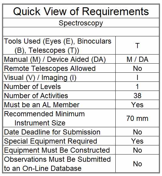 To qualify for the AL's Spectroscopy Observing Program certificate and pin, complete the required activities defined in the program.