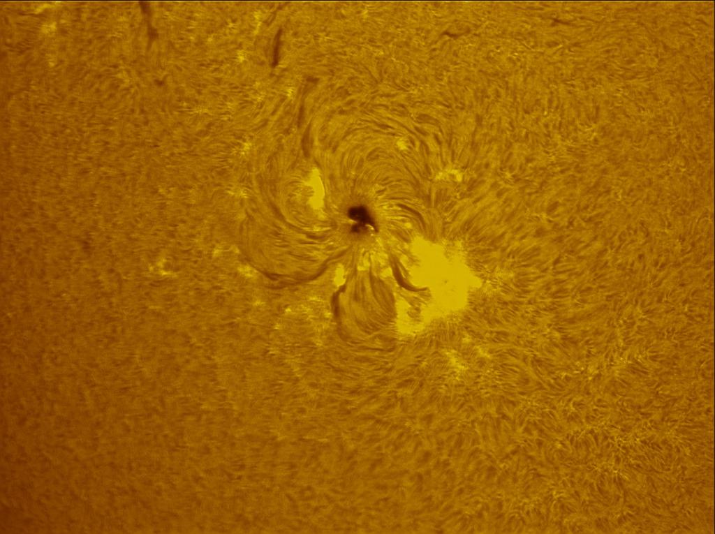 Details: Minor solar flare emanating next to a sunspot, April 4, 2016.