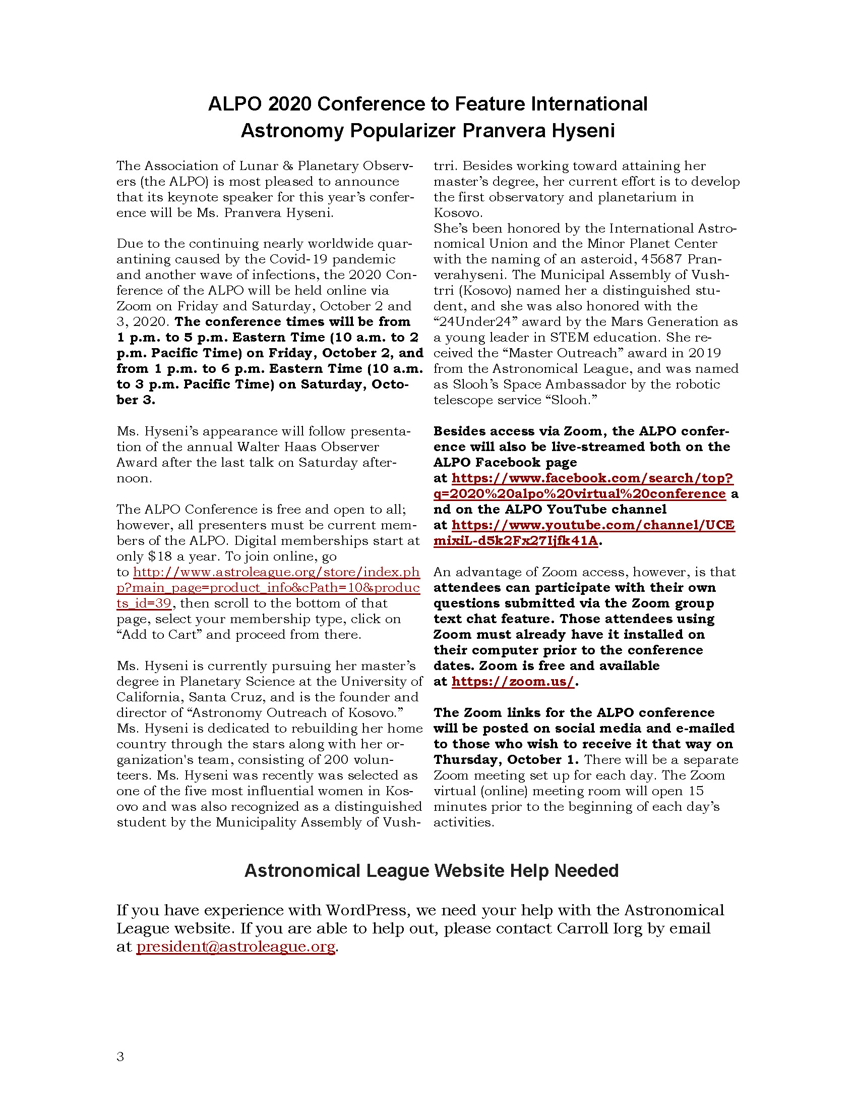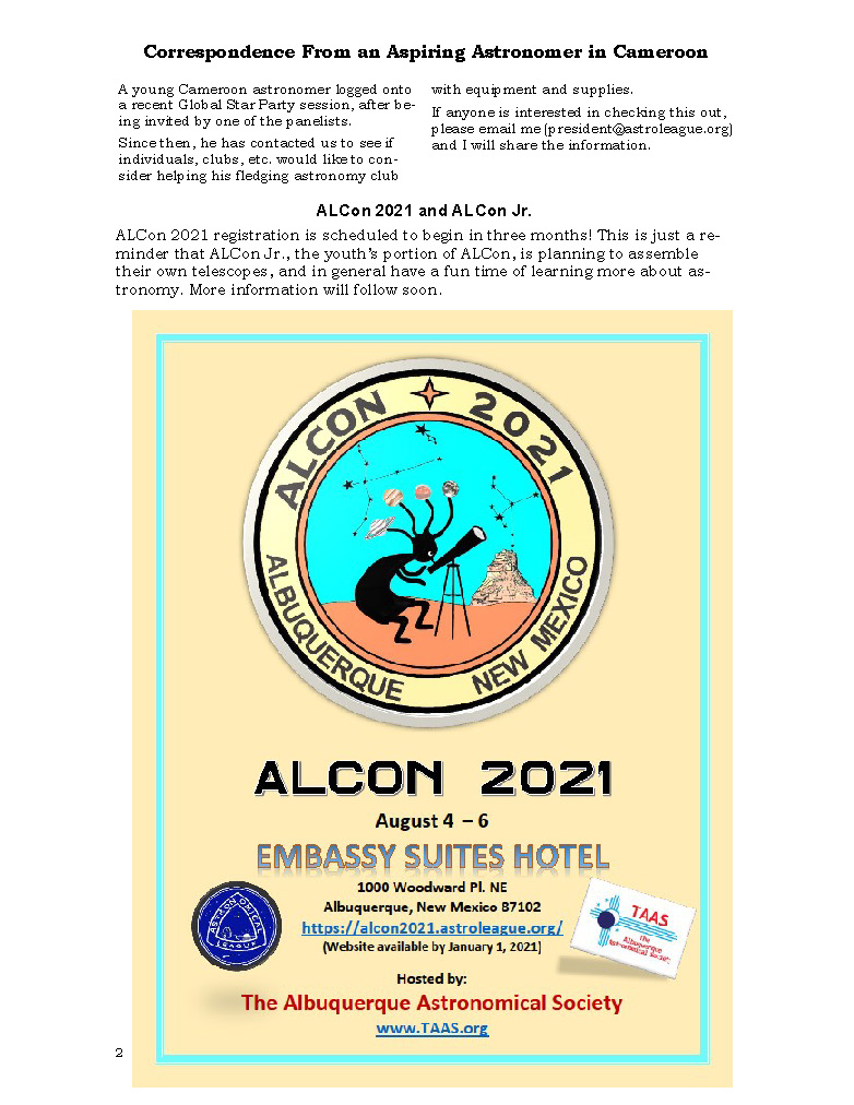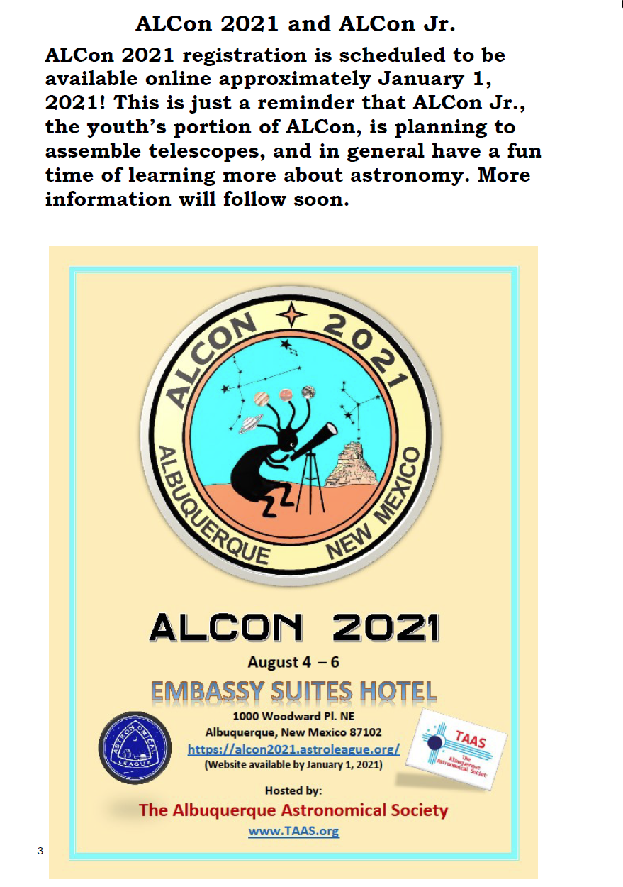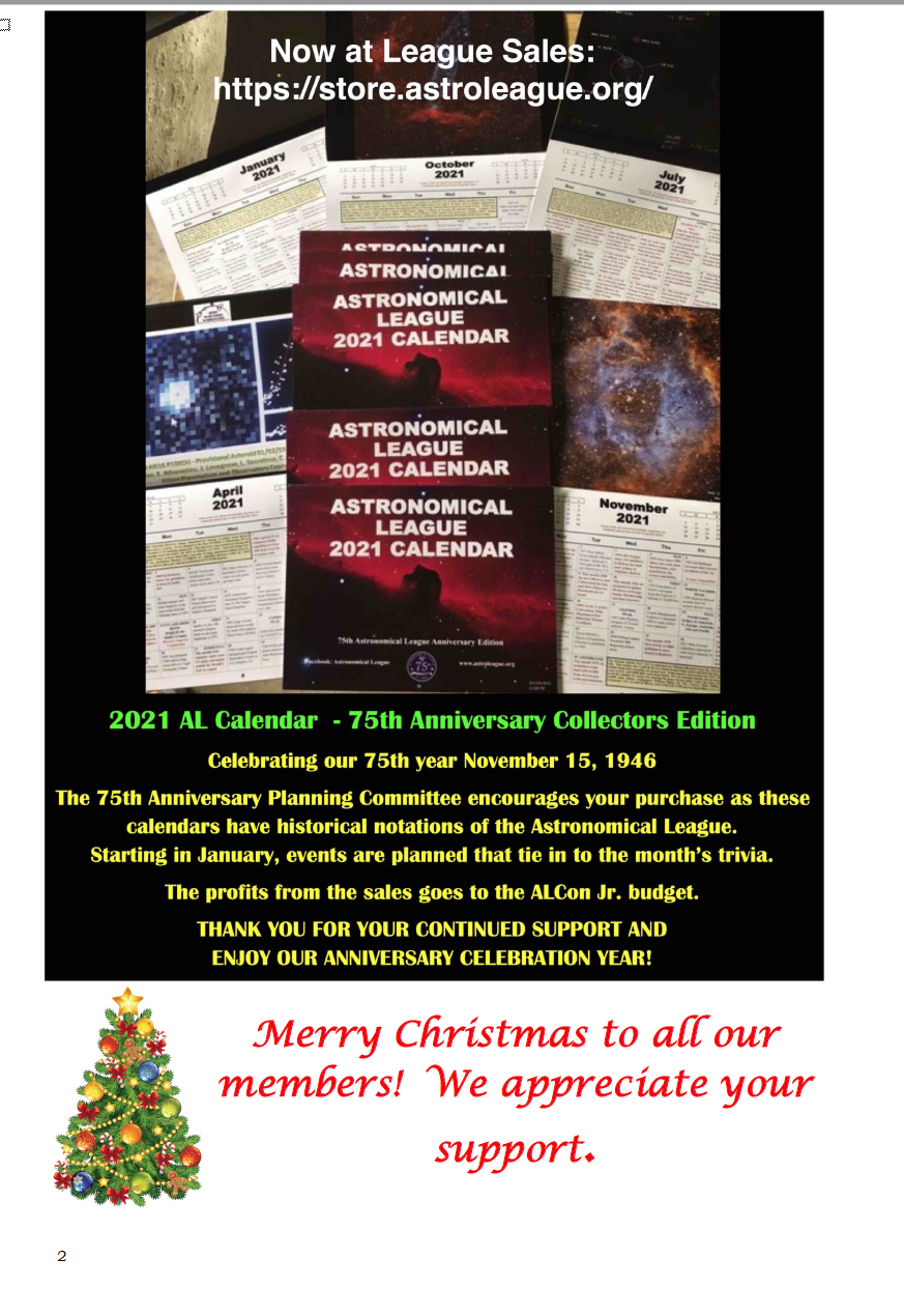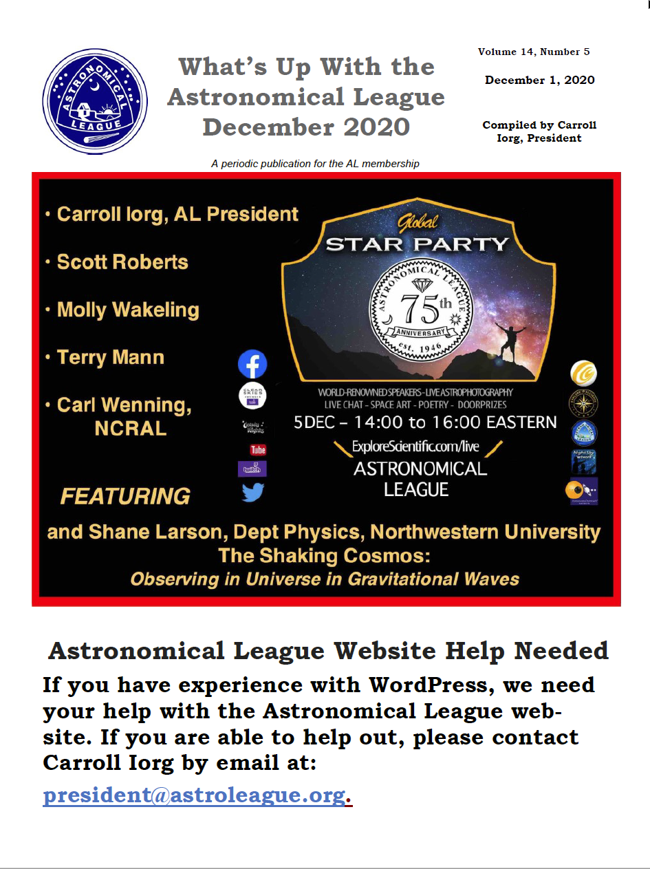 The Astronomical League is excited to announce that we will be offereing a Special Observing Award to commemorate the Great Conjunction of Jupiter and Saturn on December 21, 2020. For more information check out the web page: click here.